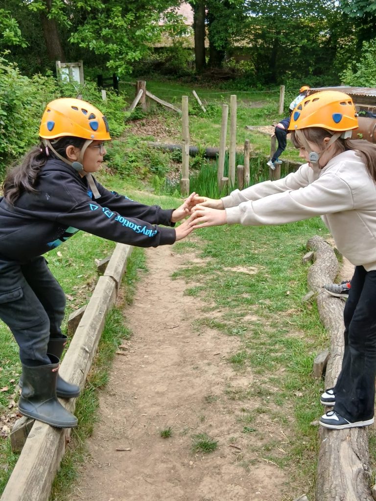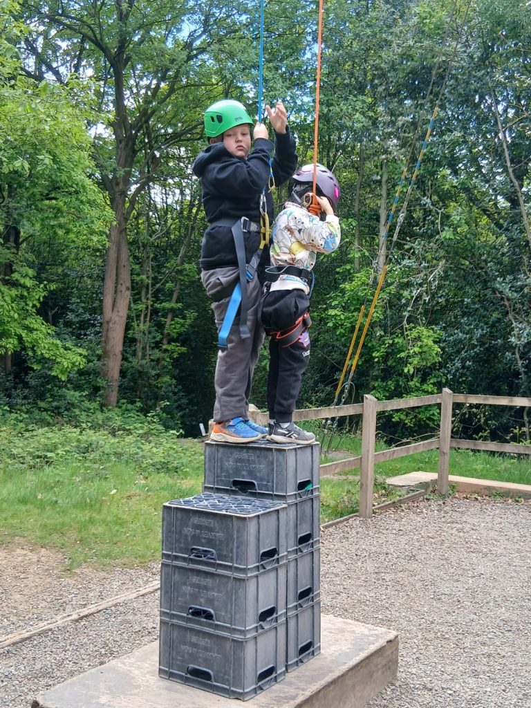 We have had another fun filled day after a short night’s sleep! Different groups have taken part in a high level ropes course, crate stacking, archery, caving (man-made!), team building activities and the blind-line. Mrs Houghton, Miss Francis, Miss Richardson, Mr Adams and I have been really pleased to add lots of positives on to Class Charts for the children for manners, resilience and team work. We have also discussed the importance of today – VE Day.