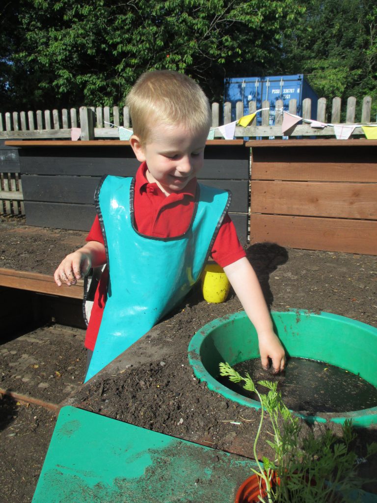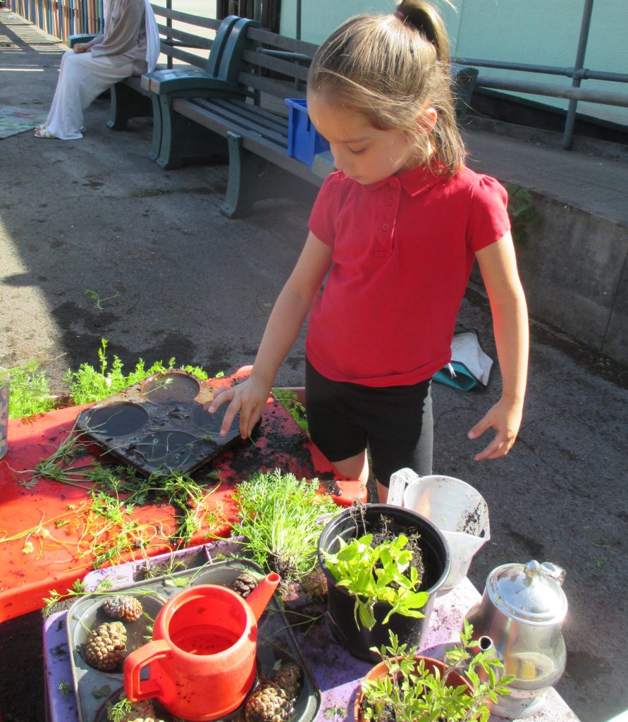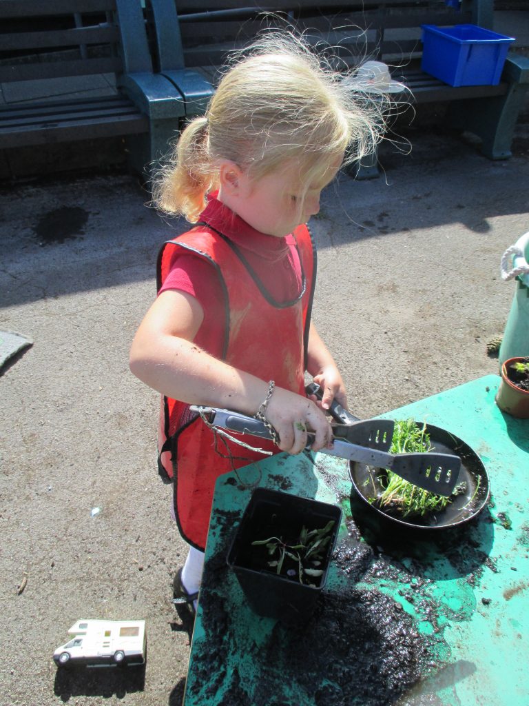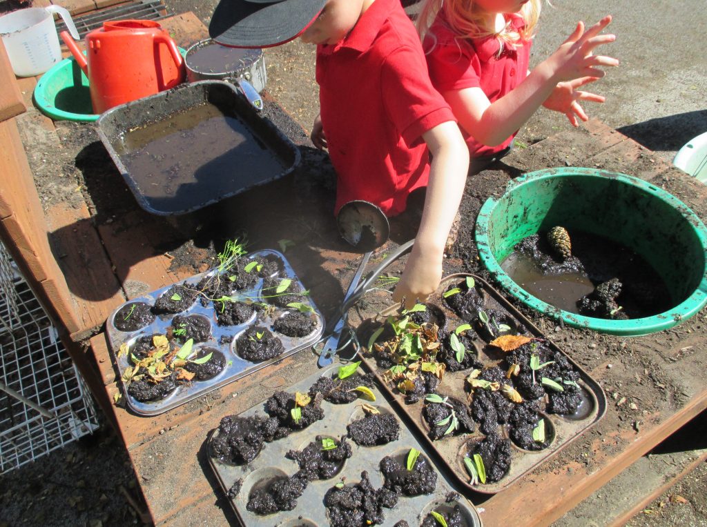 We spent a sunny morning in our Mud Kitchen today. We used some of the herbs we have been growing in our culinary creations. We made pasta, noodles and cup cakes! Our children love playing here, getting messy, using their imaginations and developing their gross and fine motor skills.