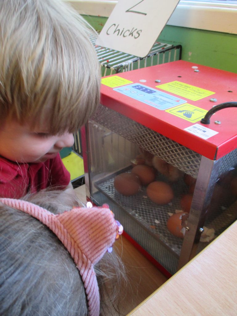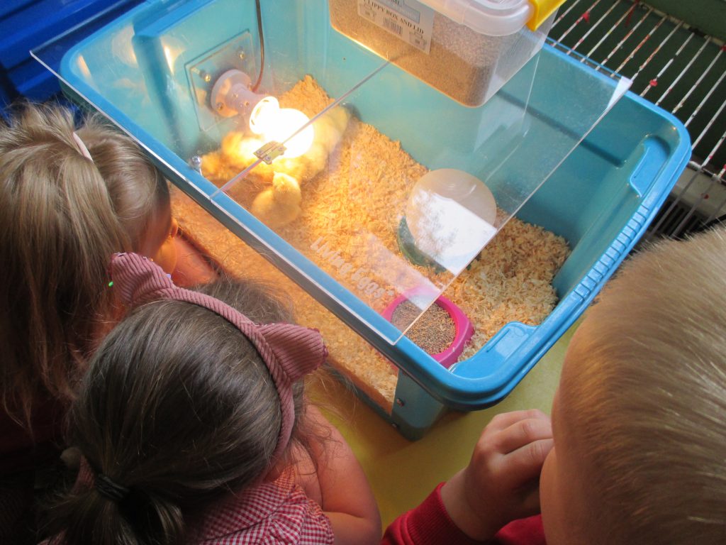 Our children were very excited on Monday to take delivery of some Hen’s eggs in an incubator. We have been watching the eggs to see when they hatched and now we are looking after the chicks. So far 9 of our 10 eggs have hatched and we have named them Popcorn, Jupiter, Baby, Franklin, Daisy, Bobby, Lucario, Olivia and Aleah. We have had lots of visitors from big school, pre-school is always very popular when we are looking after chicks!